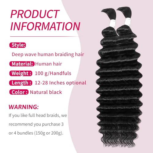 - Versatile Color: Natural black colour, easy to dye, bleached, straighten and restyle, for long-term beauty, deep wave human hair for braids bundles is worth your investment.