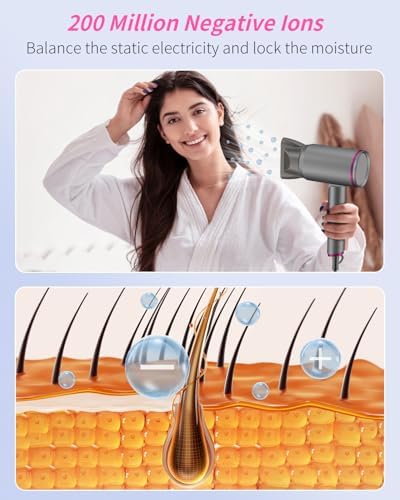 - Negative Ionic Technology: The Dxliwky Ionic hair dryer releases 200 million negative ions. These ions help to balance static electricity, leaving your hair smooth and shiny.