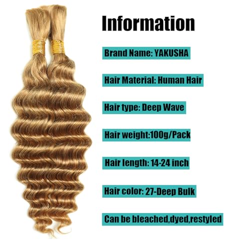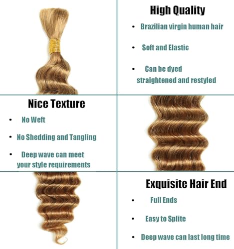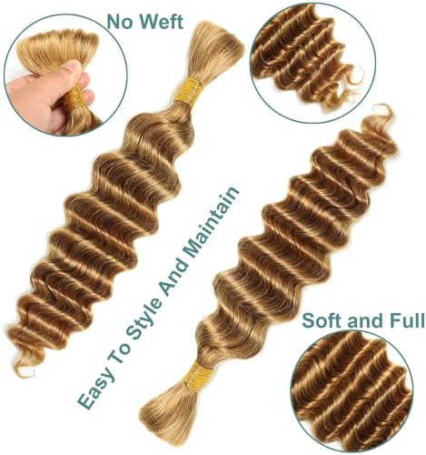 18″ Deep Wave Bulk Human Braiding Hair, 100g, Color 27, Soft and Natural