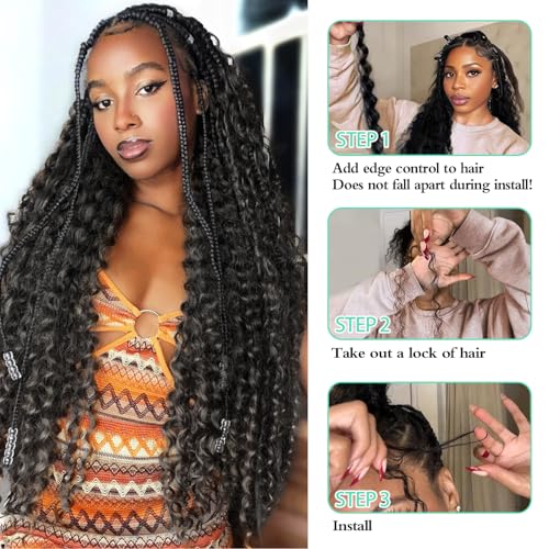 26″ Pre-looped Crochet Boho Faux Locs with Human Hair Curls