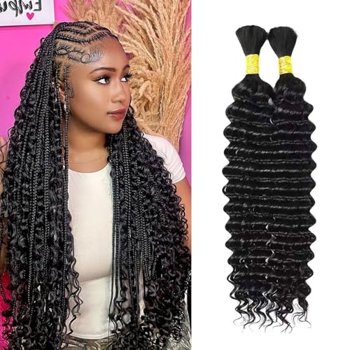 20-Inch Deep Wave Human Braiding Hair, 2 Bundles, 100g, Soft and Natural Feel