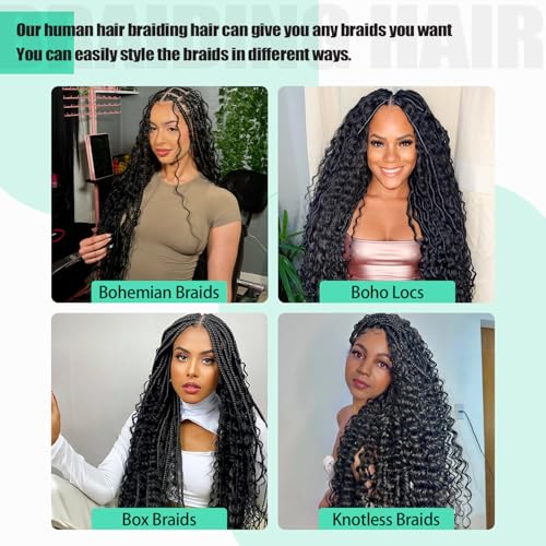 The “20 Inch 100g Deep Wave Human Braiding Hair – 2 Bundles” consists of 100% human hair, offering a natural appearance and lightweight versatility for boho braids. Its deep wave texture ensures moisture retention and bounce, enhancing styling ease and longevity