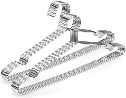 20 Pack Heavy Duty Chrome Wire Clothes Hangers, 16.5 Inch Durable Design