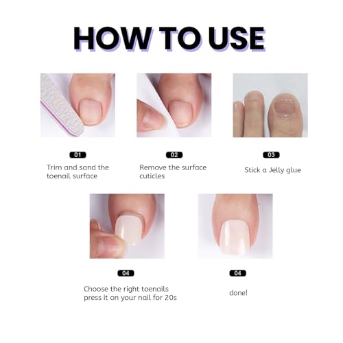 - Our breathable fake toenails use flexible jelly tabs for comfort.