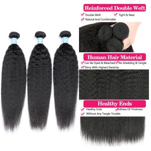 Kinky Straight 100% Brazilian Human Hair Bundles, 3 Pack, 18 Inch Length