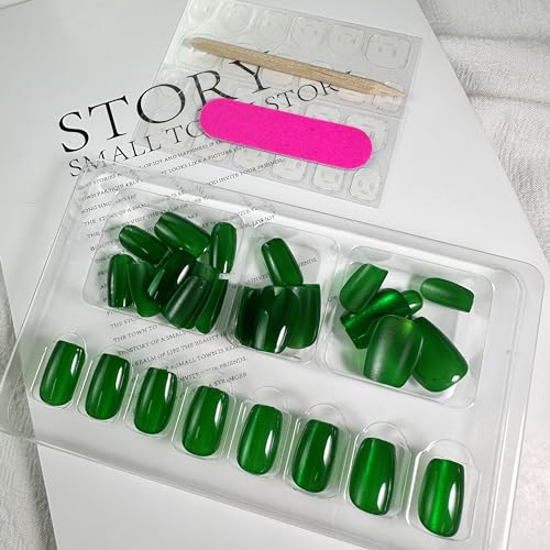A: You’ll get everything you need! You will get 24pcs green press on nails, 1pcs nail file, 24 pcs nail double-side stickers, and 1pcs wooden stick for removing false nails.