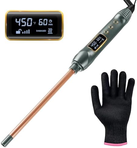 The 3/8 Inch Small Ceramic Barrel Curling Iron creates tight curls for medium to long hair, featuring an LCD display and a heat glove for safety. Its dual voltage design makes it travel-friendly, while the ceramic barrel ensures even heat distribution, reducing damage and enhancing shine for beautiful curls