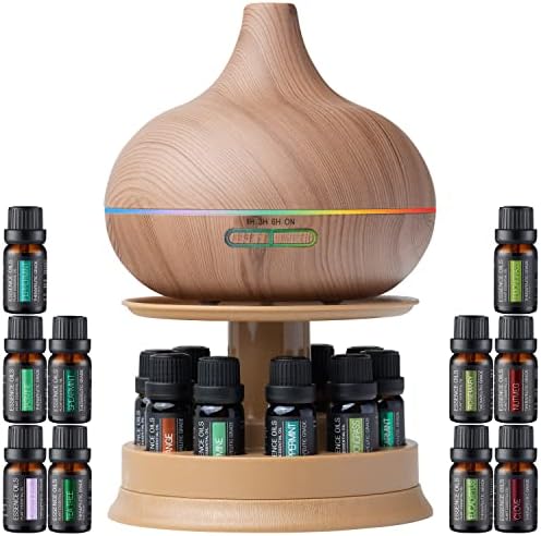 This bundle includes everything you need: 1 300ml ultrasonic essence diffuser, 1 rotating display stand for the diffuser and 10 oils, all 10 essential oils (10ml each), power cable, and manual.