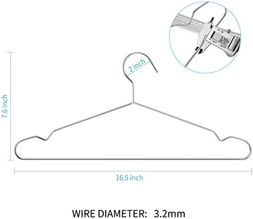 20 Pack Heavy Duty Chrome Wire Clothes Hangers, 16.5 Inch Durable Design