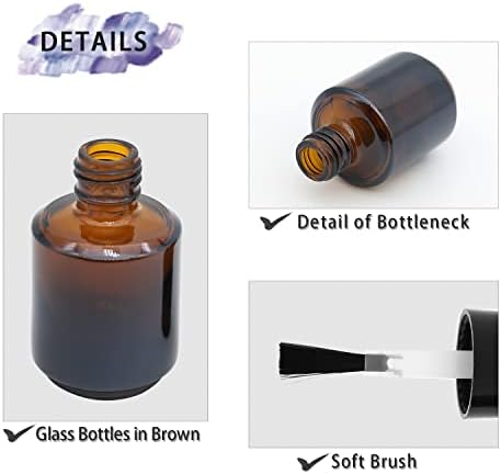 6 Pack of 15ML Refillable Amber Nail Polish Bottles with Accessories for Easy Use