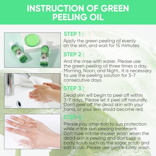 - Apply green peeling oil evenly to face or body.