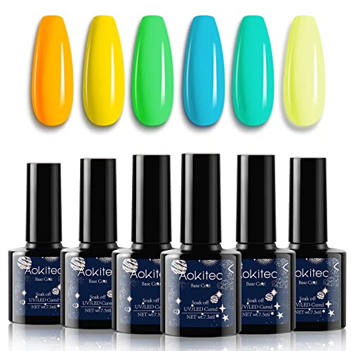 Aokitec 6-Color Soak Off Gel Nail Polish Set, 7.5ml Each Bottle