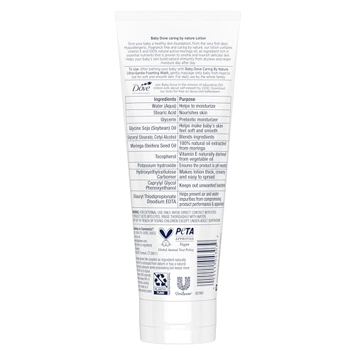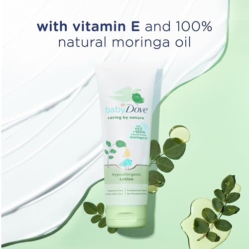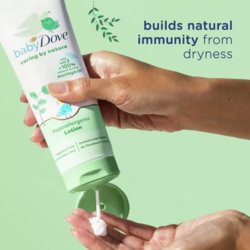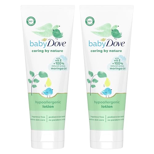 Baby Dove Caring By Nature Hypoallergenic Lotion moisturizes your baby’s skin from the very first use.