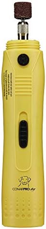 The CONAIRPROPET Dog & Cat Nail Grinder is a cordless grooming tool with LED lights and attachments for professional at-home use. The grinder helps trim nails safely and efficiently, reducing the risk of over-cutting or injury to pets. Its quiet operation ensures a stress-free grooming experience for both pets and owners