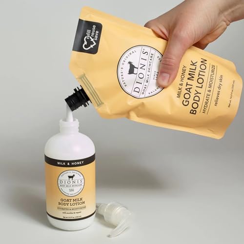 Experience deep hydration and smooth, moisturized skin with our Dionis Scented Goat Milk Body Lotion 16.9 oz Refill Pouch.