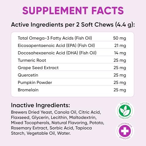 Rich in Omega 3 from Salmon Oil: each soft chew delivers EPA & DHA from premium fish oil for dogs – promotes a healthy coat, soothes dry skin, and helps reduce excessive shedding. |