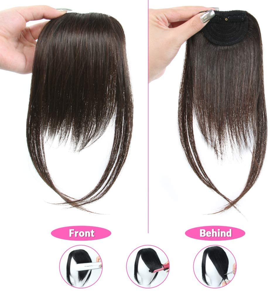 Dsoar Dark Brown Clip-in Human Hair Side Bangs Extensions for Natural Look and Style