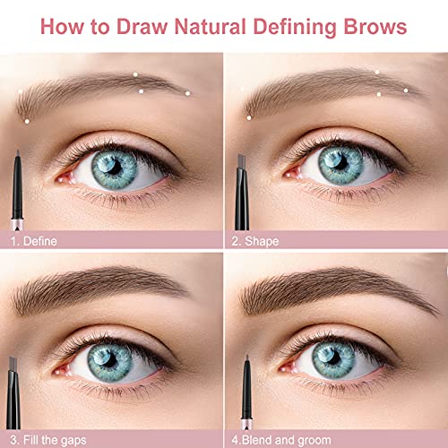 Dual Tip Waterproof Eyebrow Pencils 2-Pack, Dark Brown, Long-Lasting Formula