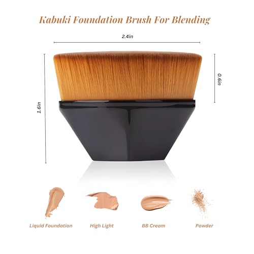 A: Use the flat top kabuki foundation brush to achieve a flawless look by buffing and blending makeup products. The brush’s super dense head and high-quality synthetic fibers allow for even, streak-free application. ✨