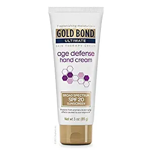 Replenish vital hydration to your hands with Gold Bond Ultimate Age Defense Hand Cream with Broad Spectrum SPF 20 Sunscreen. |