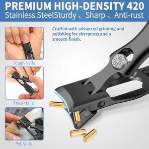 Premium Black Steel Toenail Clippers for Thick Nails, Ergonomic Design and Durable