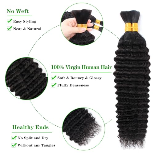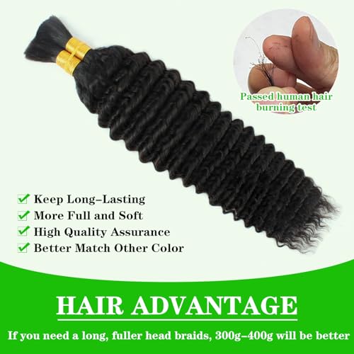 22-Inch Deep Wave Human Braiding Hair, 110g Total Weight, 3 Bundles for Styling