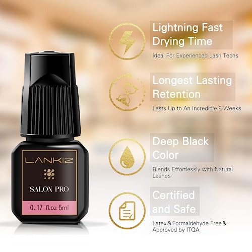 1-2 seconds drying time, Lankiz lash adhesive does not clump, no wire drawing, designed for highly skilled lash artists. |