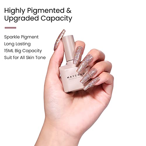 MAYCHAO 15ML Sparkly Rose Gold Gel Nail Polish for Long-Lasting Manicure