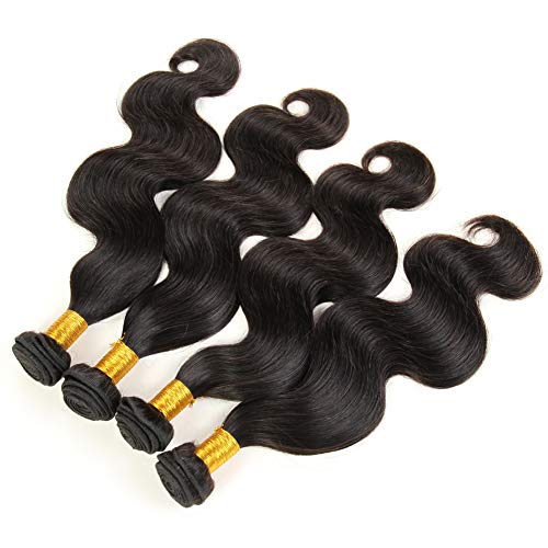 Human Hair Bundles are made of 9A Grade Brazilian Virgin Body Wave hair extensions in lengths of 20, 18, 16, and 14 inches. These 100% unprocessed wavy weaves in natural black provide a natural look and feel, adding volume and length to your hair effortlessly. |