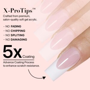 SXC Cosmetics Pink French Tip Press On Nails Set, 150 Pieces, Medium Almond Shape, 15 Sizes