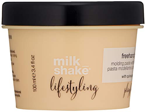 Milk_shake Lifestyling Freehand Paste is a versatile styling product that provides a strong hold with a matte finish. Its key ingredients, including natural waxes and nourishing oils, enhance texture and definition while keeping hair moisturized. Ideal for creating tousled looks or adding control to any hairstyle