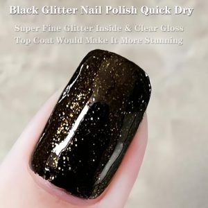 Fast Dry Black Glitter Nail Polish with Gold Sparkle, 15ml Bottle for Easy Application