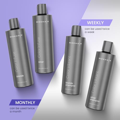 - step 1: ✋ Apply Moehair Color Infuse Silver as a toning hair mask 1-2 times monthly to prevent color from fading.