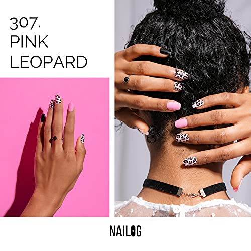 NAILOG 20 Extra Long Pink Leopard Gel Nail Strips for Easy Application and Stylish Look