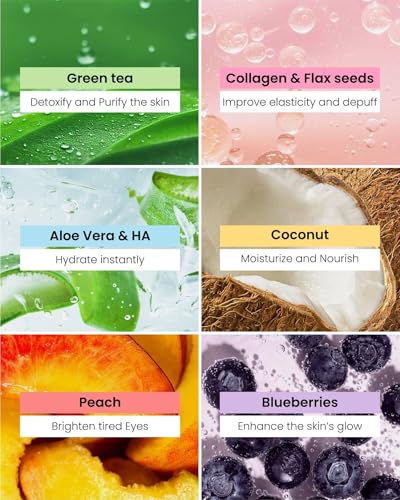 - TARGET DARK CIRCLES AND PUFFINESS: Utilize nutrient-rich superfoods like Green Tea Extract, Collagen, Peach, Coconut, Aloe Vera, and Hyaluronic Acid to revitalize under-eye areas effectively.