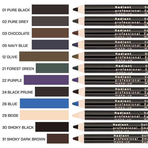 Radiant Waterproof Eye Liner Pencil with Smudging Tool, 30g for Easy Application
