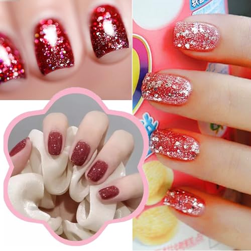 Red Glitter Nail Polish 14ML Quick Dry Formula for Women and Girls