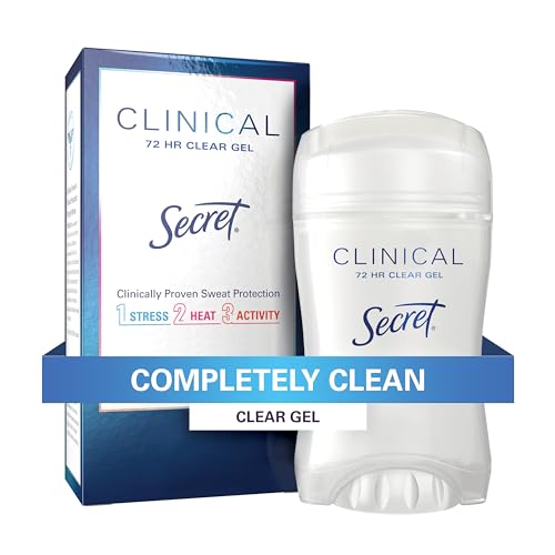 Secret Clinical Strength Antiperspirant and Deodorant for Women offers 3X stress sweat protection with a clear gel formula infused with pH balancing minerals. Its Completely Clean scent keeps you feeling fresh, while active ingredients effectively block sweat and odor, ensuring long-lasting dryness and confidence throughout the day