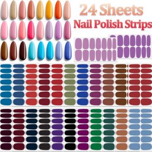 SILPECWEE 24 Sheets Solid Color Nail Wraps with Nail File for Easy Application