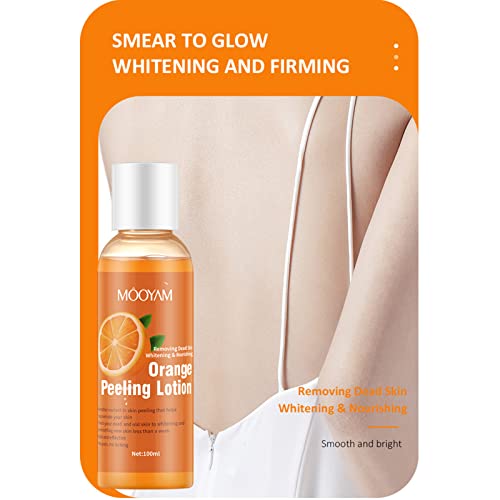 Our Korean Orange Peeling Lotion deeply cleanses body skin, removing impurities from shoulders. This whitening exfoliating lotion brightens, repairs, and hydrates skin for a youthful glow. It helps repair large pores and restore skin elasticity.