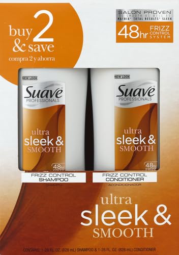 - Suave Professionals Sleek and Smooth shampoo and conditioner set is a game changer for dry, frizzy hair.Enriched with silk protein and vitamin E complex, this anti-frizz shampoo and conditioner set brilliantly revives damaged hair without weighing it down, providing a salon-healthy look and enviable shine.