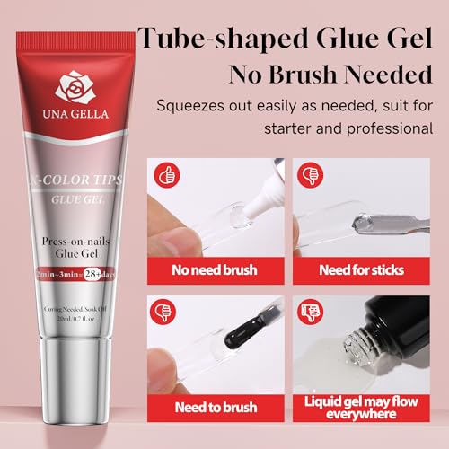 UNA GELLA 20ml Nail Glue Gel for Press On Tips Pack of 2 Pieces