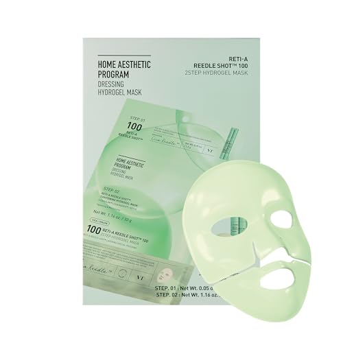 The VT COSMETICS Reti-A Reedle Shot 100 2-Step Hydrogel Mask features an intensive tightening formula with exosome retinol, designed for overnight use. Ideal for retinol beginners, it promotes skin renewal, reduces fine lines, and enhances hydration. Key ingredients include retinol for rejuvenation and hydrogel for deep moisture retention