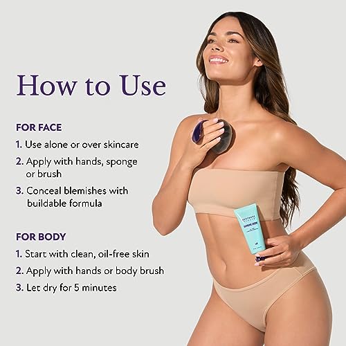 - Apply 1 layer to cover redness, uneven skin tone, enlarged pores, stretch marks, and dullness.