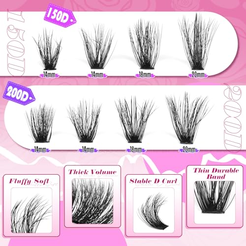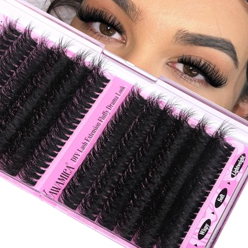 The Yawamica Wispy Individual Lashes Clusters feature 150D and 200D thick volume lashes in D curl, ranging from 14-20mm. With 240 pieces, these DIY lash extensions are perfect for beginners, offering a fluffy, natural look that enhances eye beauty while being lightweight and easy to apply