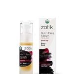 Zatik Naturals Nutri Face Serum combines USDA organic rose hip and black seed oils to nourish and rejuvenate the skin. This vegan, non-GMO formula is gluten, soy, and alcohol-free, promoting a balanced pH. Rich in antioxidants and essential fatty acids, it hydrates, brightens, and supports skin health effectively